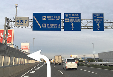 新潟バイパス紫竹山I.Cを降ります。