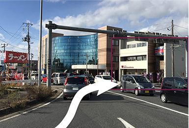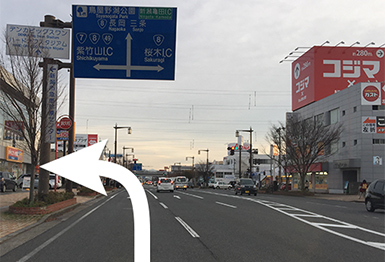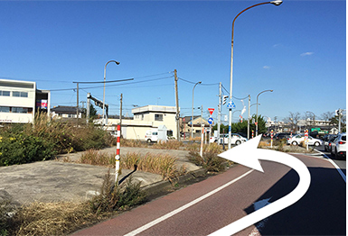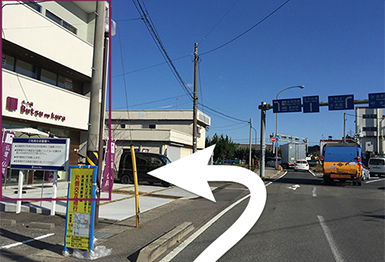 弁天I.C手前の交差点を左折します。
